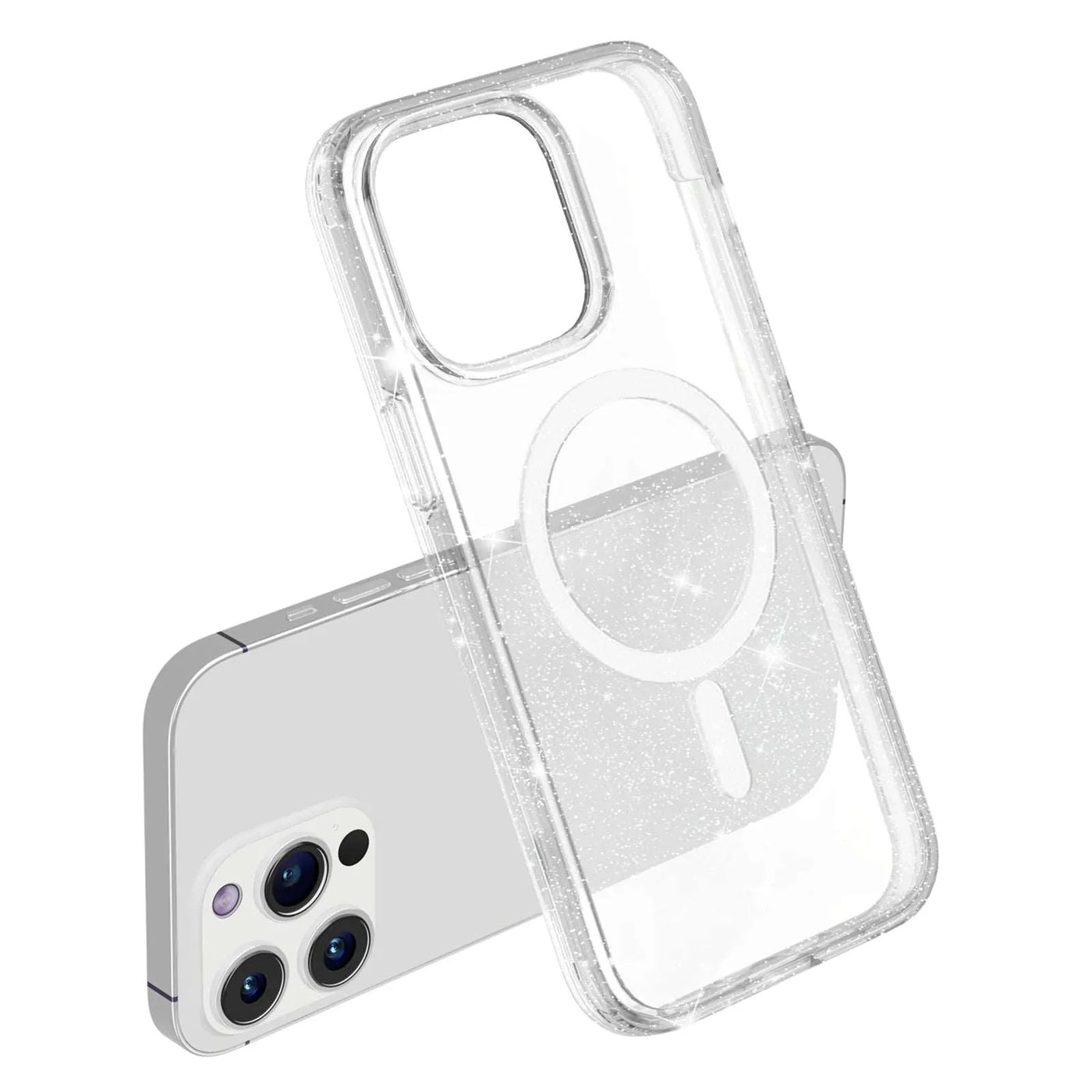 Glitter Magnetic Case for iPhone 15 Pro Max , Hard PC + Soft TPU Compatible with MagSafe Phone Cover - White