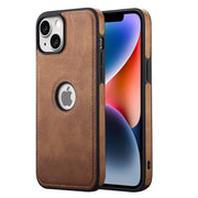 iPhone 14 Max Classic Luxury Elegant PU Leather Case Cover with Logo Cut - Brown