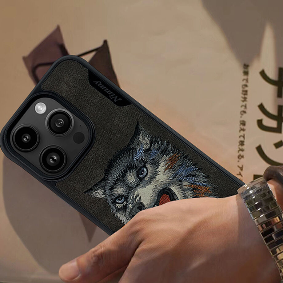 iPhone 15 Pro Max Nimmy Dazzling Series Embroidery Leather Case - Wolf – Case cart index