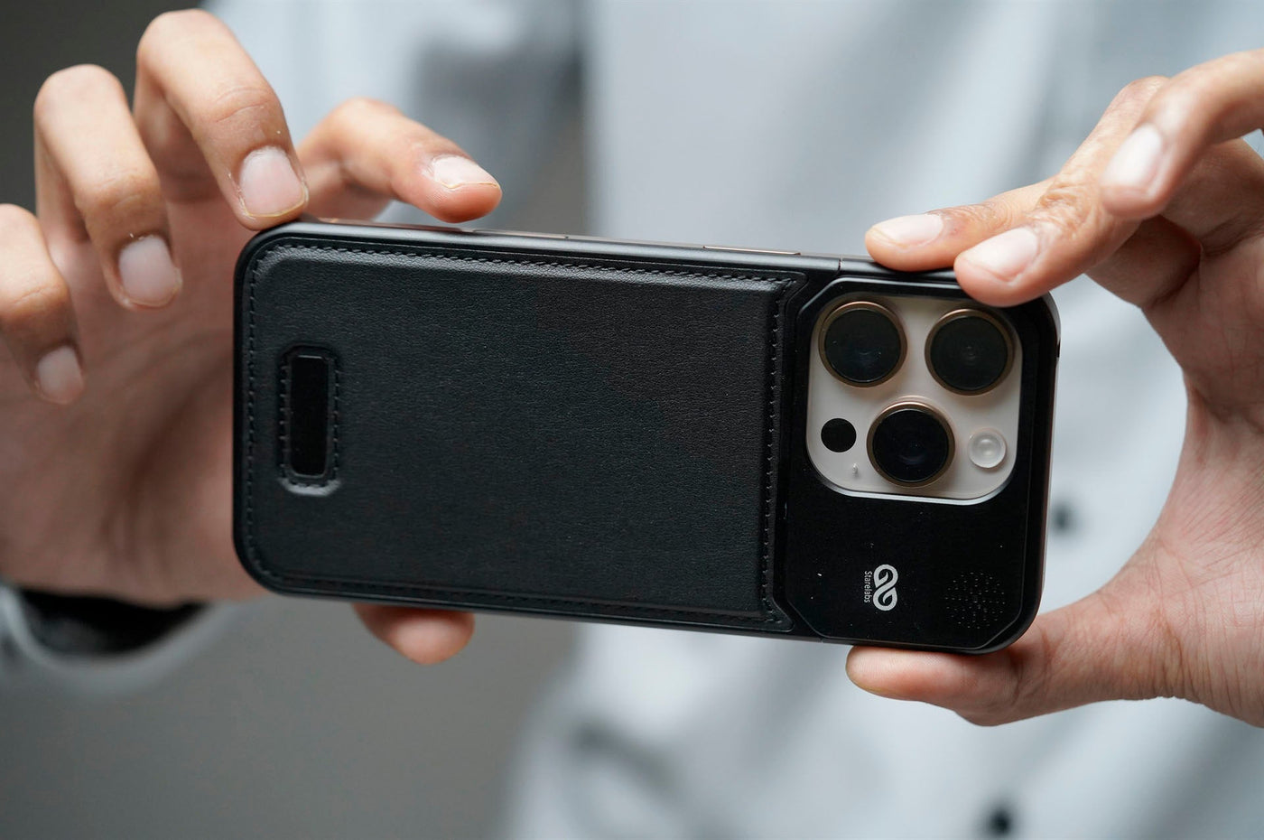 iPhone 16 Pro Max MagSafe Vegan Leather Case with Black Metal Frame Perfume Case