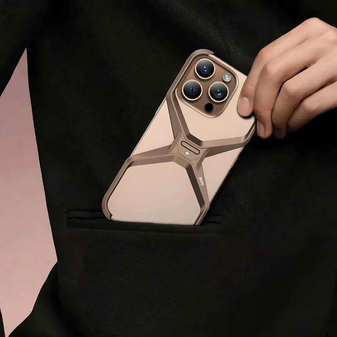 iPhone 16 Pro Max X Shape Metal Case Super Slim Premium Metal Luxury Aluminum Frameless X Shaped Case - Desert Titanium - iPhone 16 Pro Max