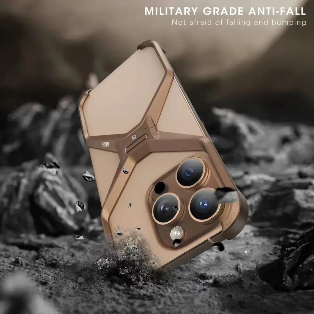 iPhone 16 Pro Max X Shape Metal Case Super Slim Premium Metal Luxury Aluminum Frameless X Shaped Case - Desert Titanium - iPhone 16 Pro Max