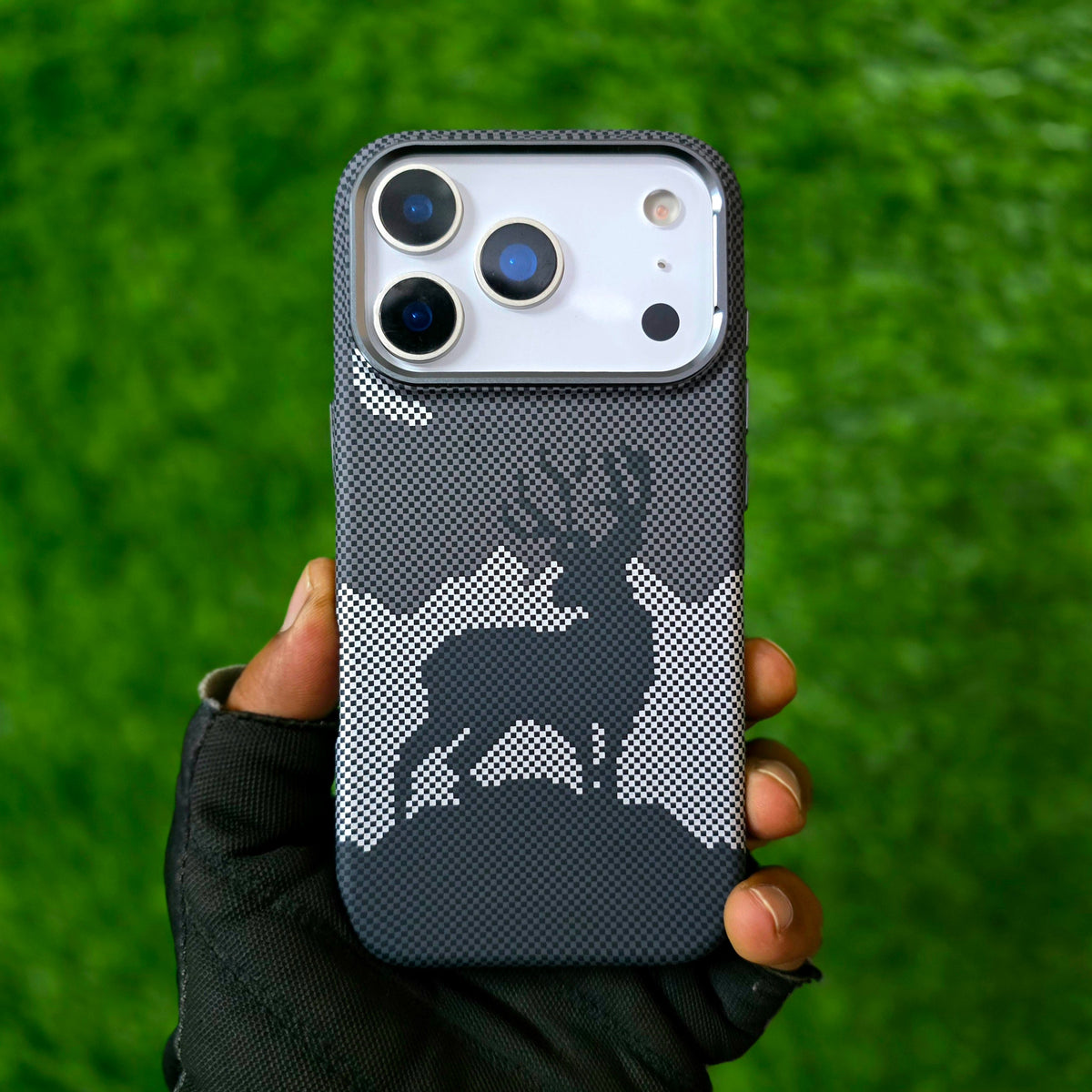 iPhone 17 Pro Max Aramid Carbon Fiber "Deer in Night" Texture 0.8mm Thin Cover with Magsafe - Grey