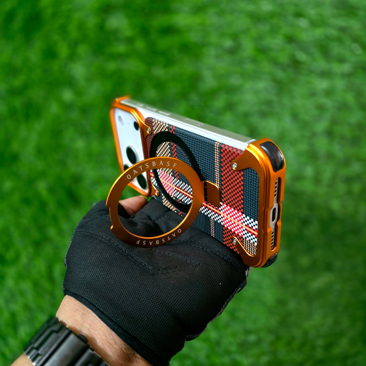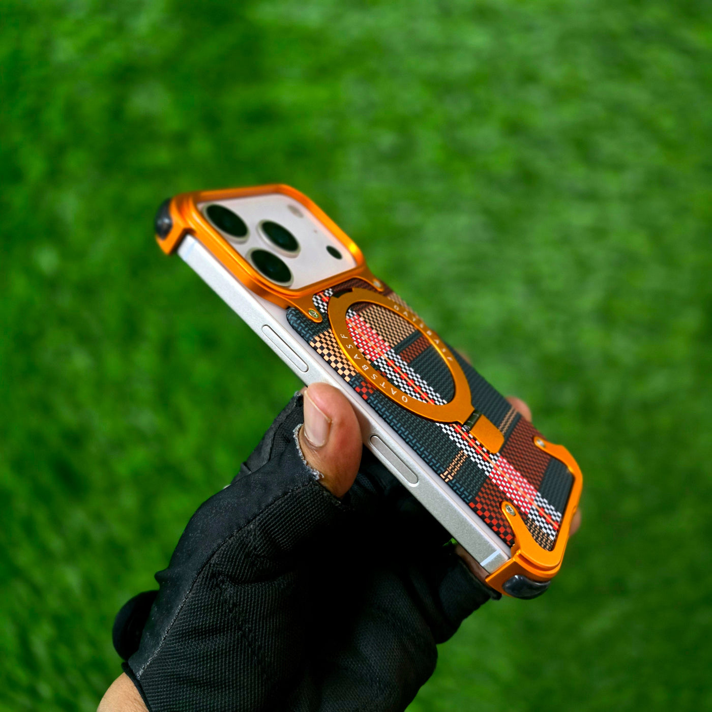 iPhone 17 Pro Max Metal Case, Frameless Leather Magnetic Invisible Stand Cover with Magsafe - Orange