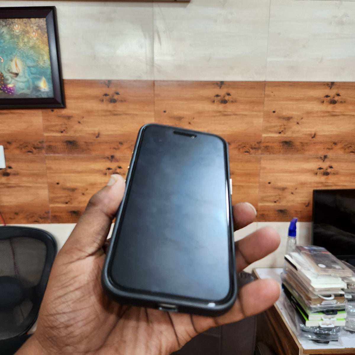 iPhone 17 Pro Max Sibling Series Sleek Cross Texture Case with Metal Camera Protection - Black