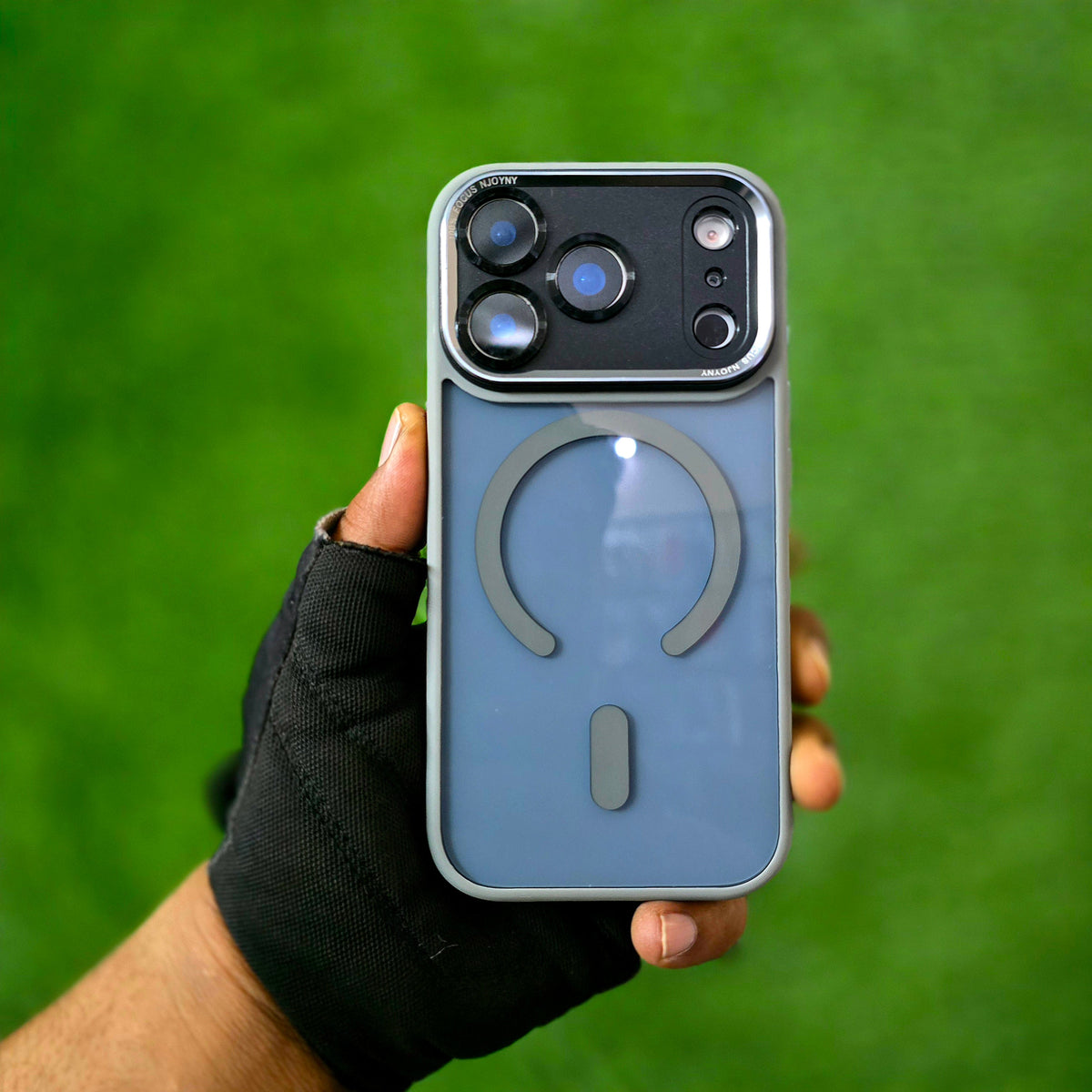 iPhone 17 Pro Semi Transparent Luxury Metal Lens Frame Cover with Magsafe - Grey