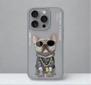 Nimmy 3D Embroided Phone Back Case Cover for Apple iPhone - iPhone 15 - Bull Dog Grey