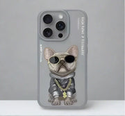 Nimmy 3D Embroided Phone Back Case Cover for Apple iPhone - iPhone 15 Pro - Bull Dog Grey