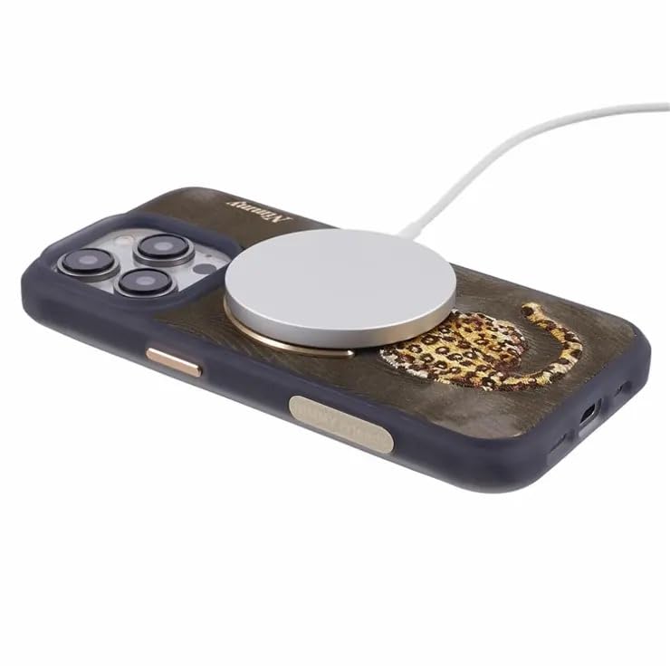 Nimmy Design Dreamy Animal Series Magnetic Safe Case for Apple iPhone 16 Pro Max 3D Embroidery Anti-Slip Scratch Resistant Protective Cover (Golden Leopard)