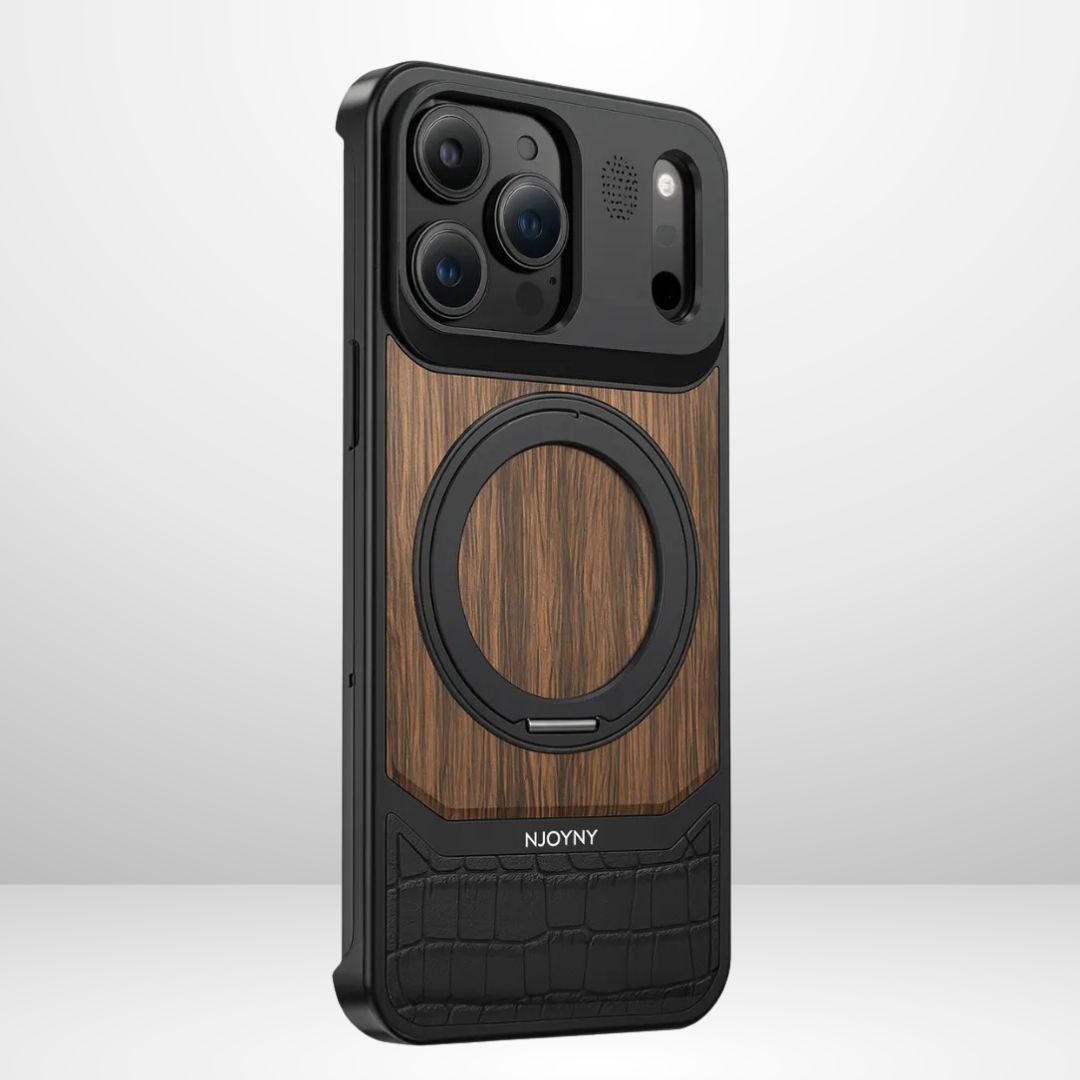 NY GoldWood Series Leather MagSafe Perfume Case for iPhone 17 Pro/Pro Max - Black / iPhone 17 Pro