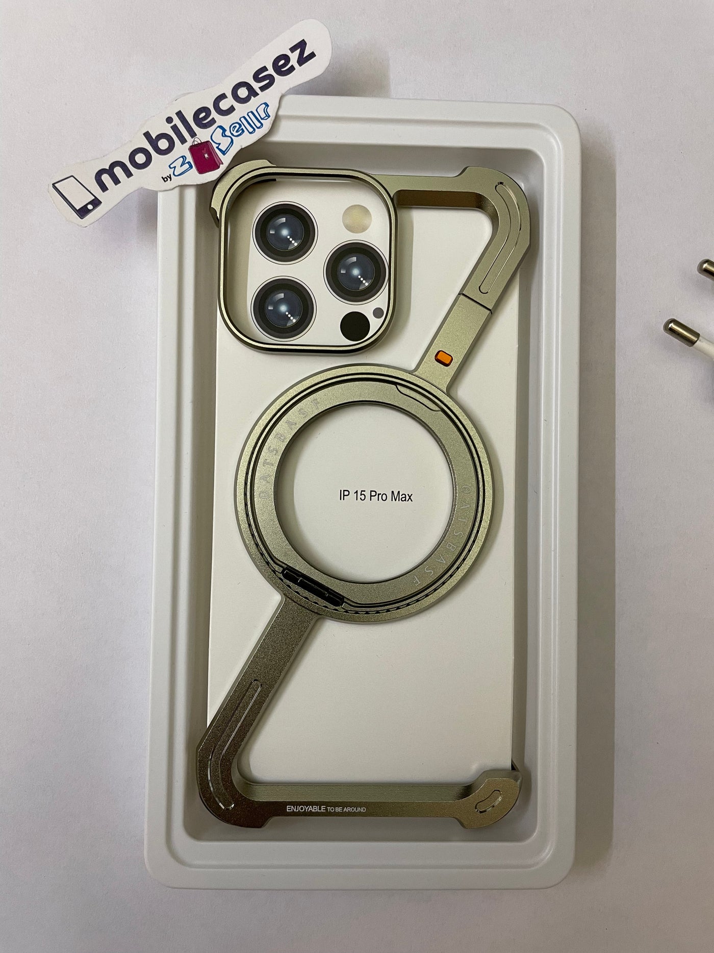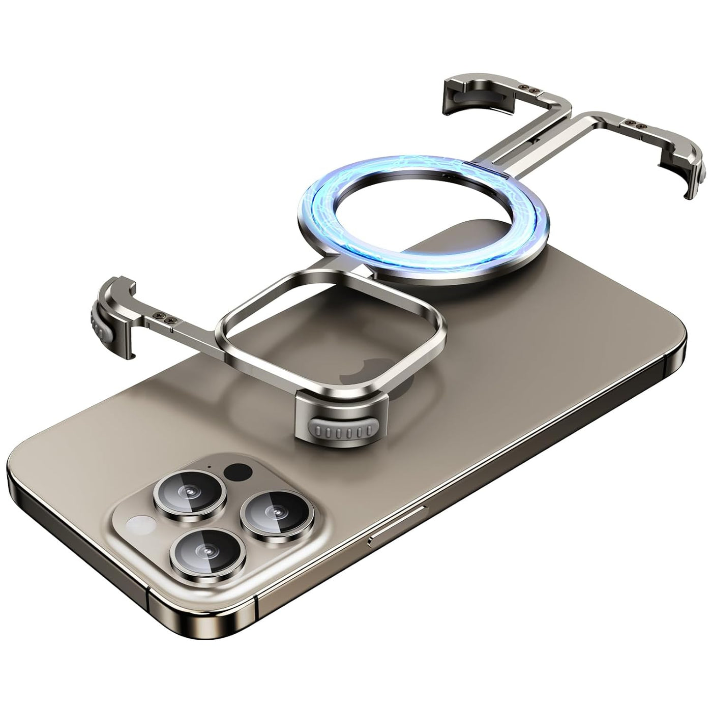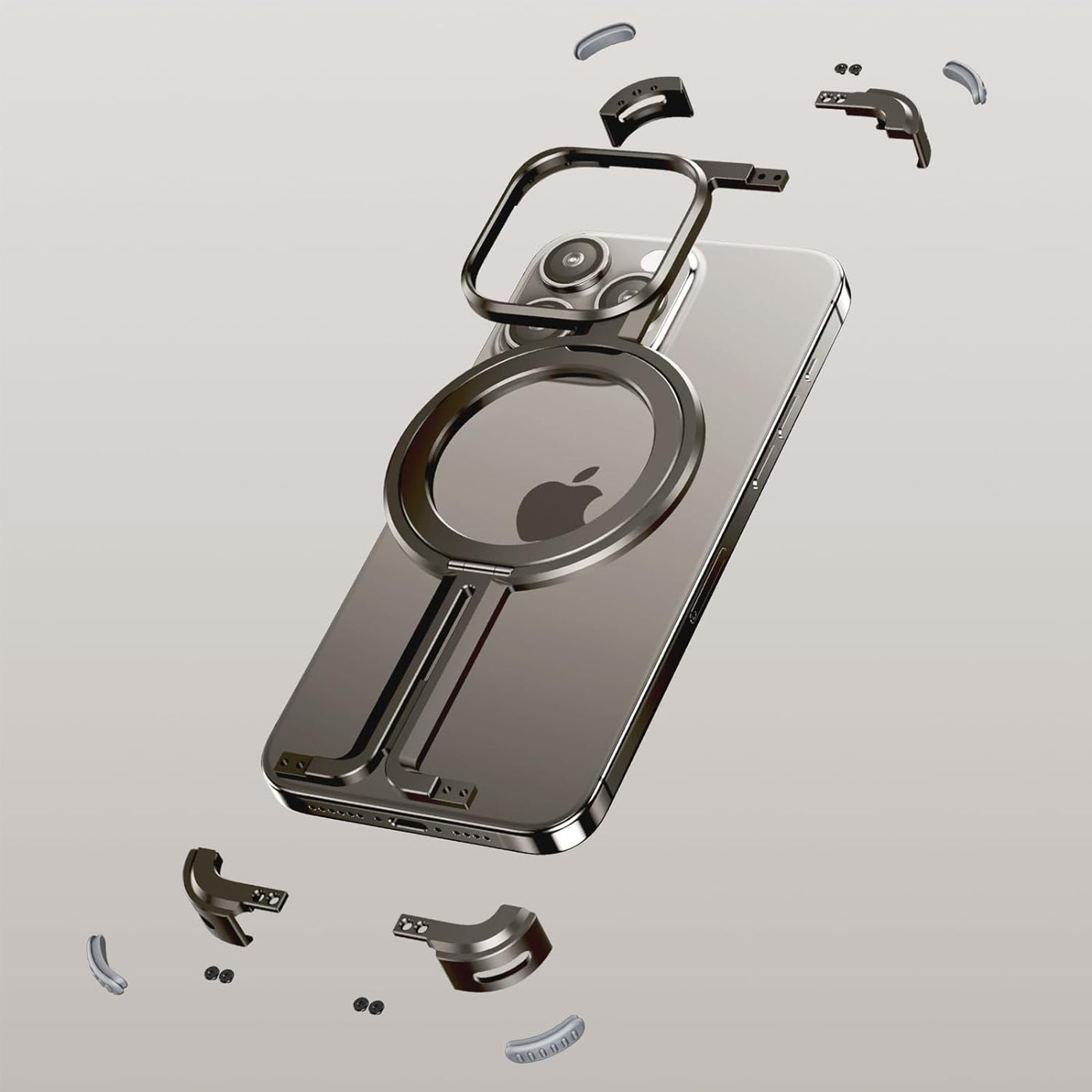 OATSBASF for iPhone 15 Pro Case, Sleek Minimalist Protective Shock Absorption Aerospace Grade Aluminum Shells with Built-in Kickstand Phone Case (K-Natural Titanium, for iPhone 15 Pro)