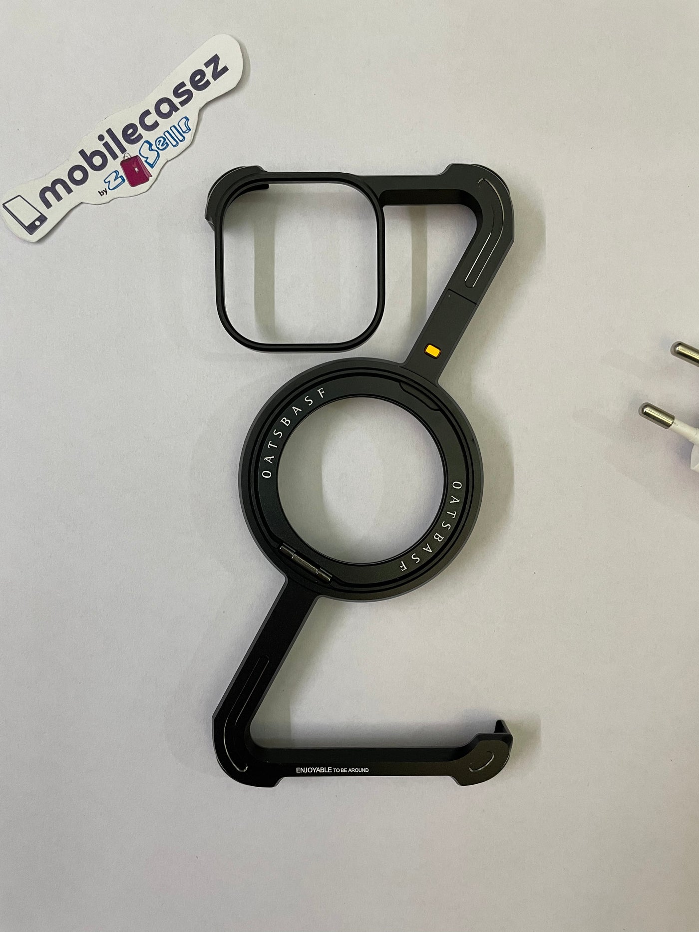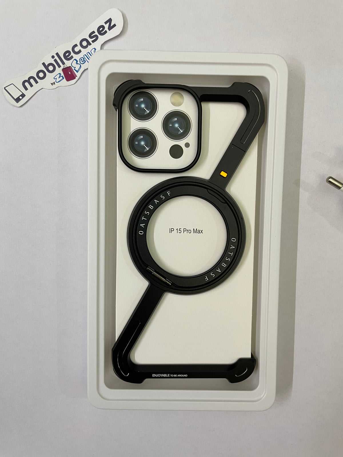 OATSBASF for iPhone 15 Pro Max Case, Sleek Minimalist Protective Shock Absorption Aerospace Grade Aluminum Shells with Built-in Kickstand Phone Case (K-Natural Black, for iPhone 15 Pro Max)