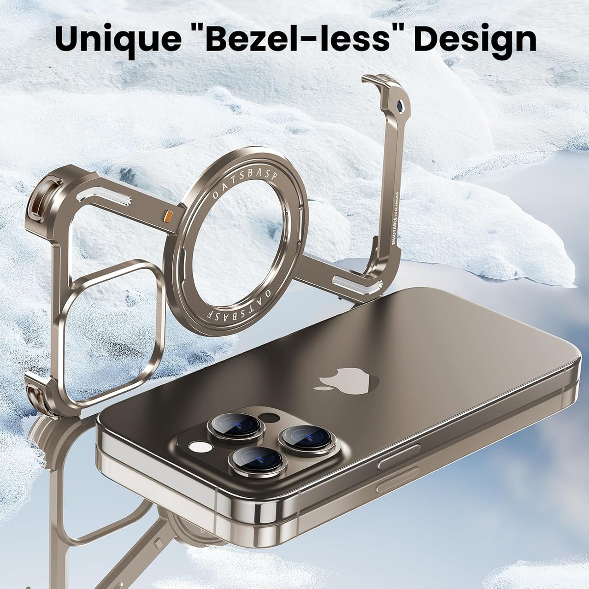 OATSBASF Minimalist Phone Case Compatible with iPhone 16 Plus, 360° Rotation Kickstand Aluminum Metal Frameless Design Bumper Z Case, Protective Shock Grade Shell, Desert Titanium