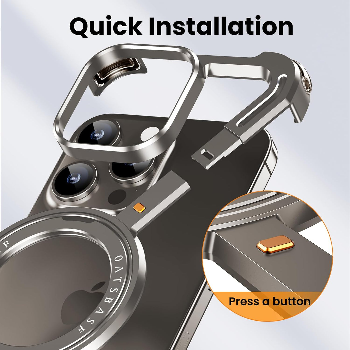 OATSBASF Minimalist Phone Case Compatible with iPhone 16 Pro, 360° Rotation Kickstand Aluminum Metal Frameless Design Bumper Z Case, Protective Shock Grade Shell, Desert Titanium