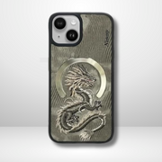 Premium 3D Embroidered Fantasy Animal Series Leather MagSafe Case for iPhone 15 Series( Gold Dragon) - Gold Dragon / iPhone 15