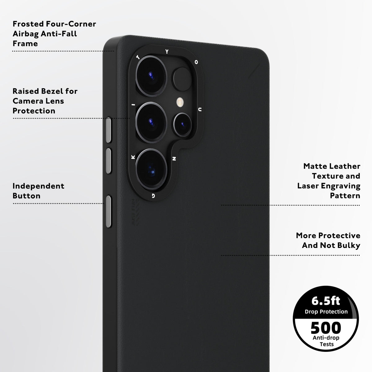 Samsung Galaxy S25 Ultra Leather Case, YOUNGKIT Matte Leather Cover Magsafe - Black
