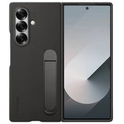 Samsung Galaxy Z Fold 6 Leather Protective Shell Case with Kickstand - Black