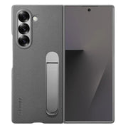 Samsung Galaxy Z Fold6 Leather Case, Kickstand Kindsuit Series Leather Back Cover - Grey