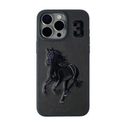 Santa Barbara Boris Series(Horse) Geniune Leather Case Cover for (iPhone 16 Horse 3)- Black