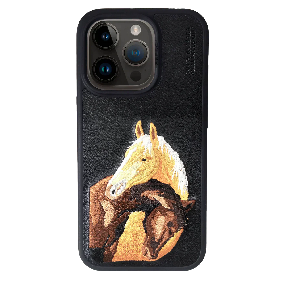 The ISIDORE Series Genuine Santa Barbara Polo Mobile Back Cover for iPhone 15 |Men and Women||Horse Series||Embroidery Cover||Luxury Back Case||Free Leather Cover of Same Model Inside| (Black)