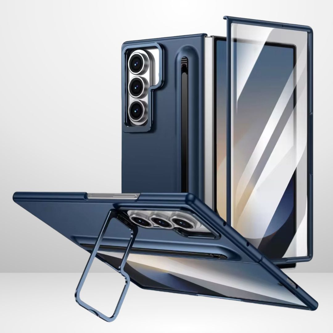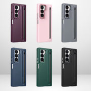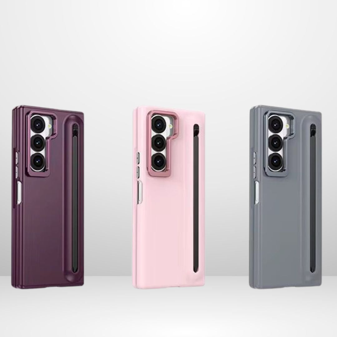 Slim PC Stylus Case with Camera Ring Stand & Front Glass for Samsung Fold 7 - Mahroon / Fold 7