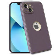 iPhone 13 Leather Silver Electroplated Chrome Back Cover-Purple