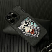 Nimmy Embroidery for iPhone 14 TPU+PU Leather Shockproof Dazzling Series-Tiger