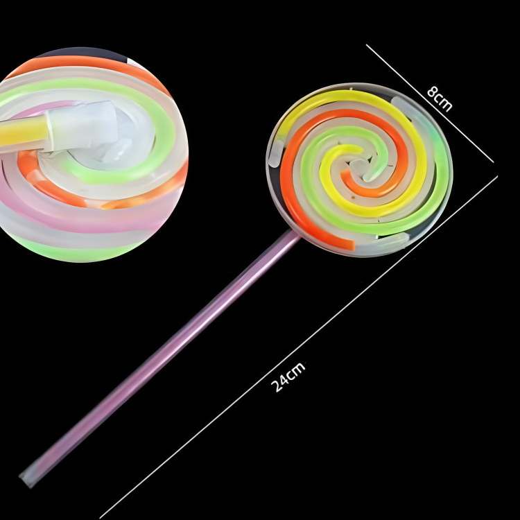 Shaped like a real lollipop, this glowing spinner toy flashes, rotates, and displays vibrant neon colors in the dark. It creates an eye-catching effect that captivates kids and adds fun to any nighttime event or party.