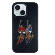 iPhone 15 Plus Polo Jockey Series Santa Barbara Genuine Leather Case - Black