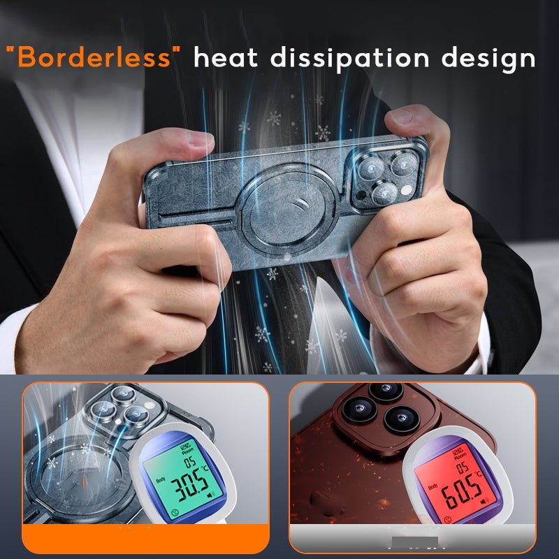 iPhone 15 Pro Max Pure Metal Framless Magnetic Impact Resistance Bumper Case with Stand - Black