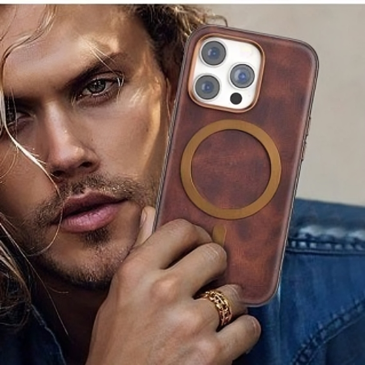 iPhone 16 Pro Classic Business Series Leather Case with Metal Magsafe Ring - Titanium Gray