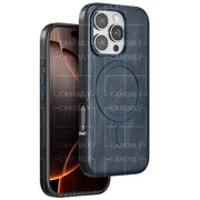 iPhone 16 Pro Max Classic Business Series Leather Case with Metal Magsafe Ring - Blue