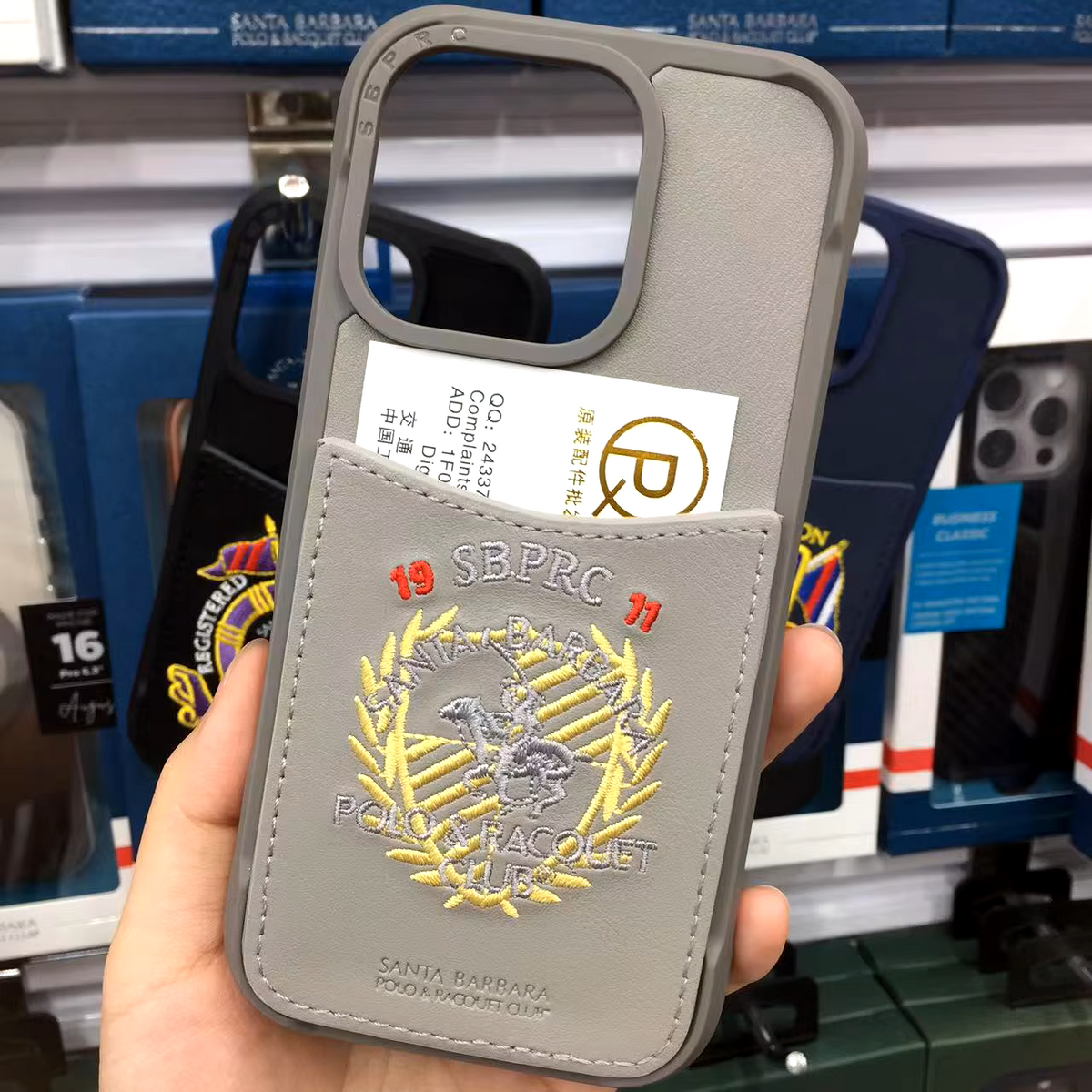 iPhone 16 Pro Max Santa Barbara Abner Series Polo Original Leather Case with Card Slot - Gray