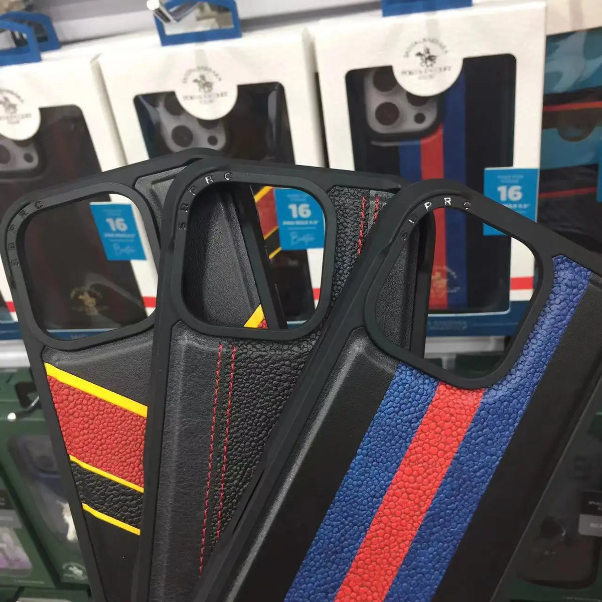 iPhone 16 Pro Max Santa Barbara Barton Series Polo Original Leather Case - Black/Red