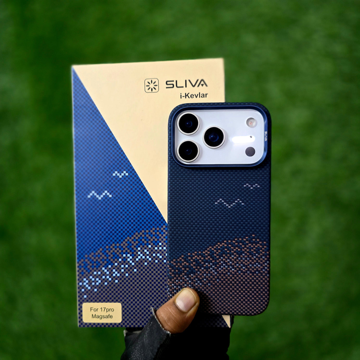 iPhone 17 Pro 0.4mm Thin Original SLIVA Real Aramid Carbon Fiber Case with Magsafe - Brown-Blue
