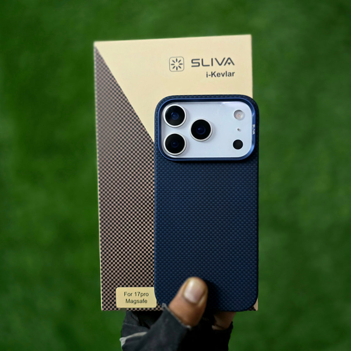 iPhone 17 Pro 0.4mm Thin Original SLIVA Real Aramid Carbon Fiber Case with Magsafe - Blue