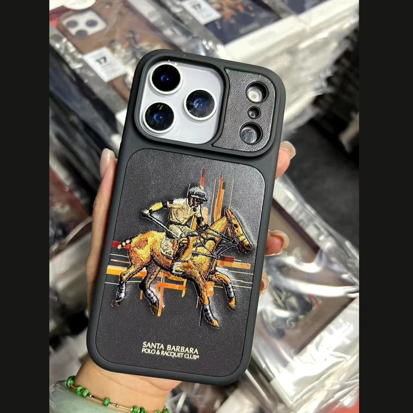 iPhone 17 Pro Leather Case, Original Santa Barbara Cedric Series Leather Back Cover - Black