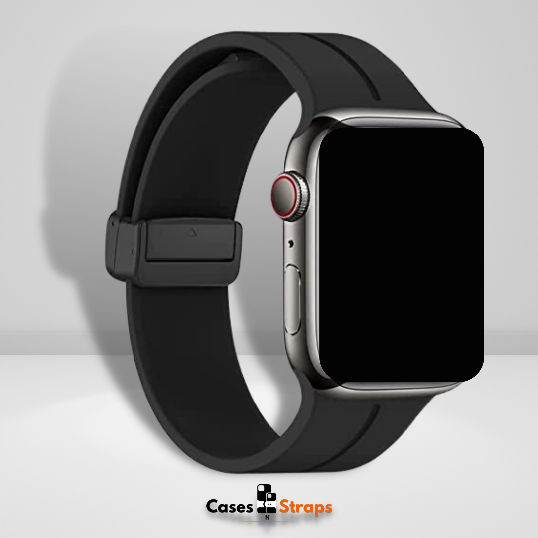 Silicone Magnetic Buckle Watch Strap Black Color - 38/40/41 MM